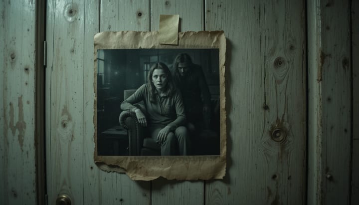 It looked old - screaming at the edges. In the picture, a woman was sitting on a couch that looked like the same apartment. His face froze in fear. Behind him, a man stood almost a combination in the shadow. His face was partially hidden, but thick glasses removed her.