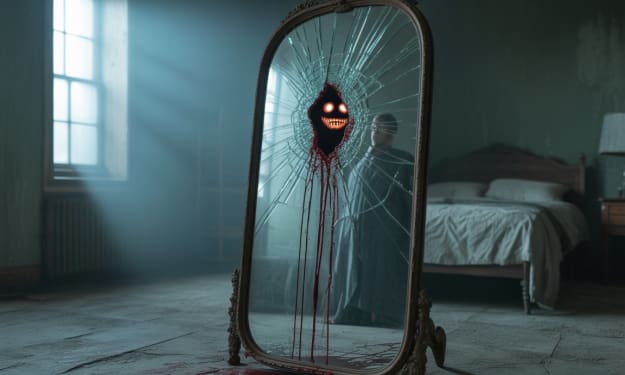 Then, a cold chill swept over her. In the reflection of the window, she saw someone standing behind her.