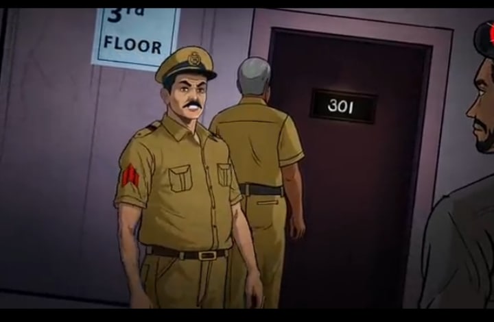 Suddenly, fast footsteps echoed. A police inspector and two officers rushed up.