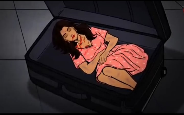 Inside was the dead body of the same girl who had been sitting in his taxi. Her skin was blue. Her eyes were open. Dark marks covered her neck.