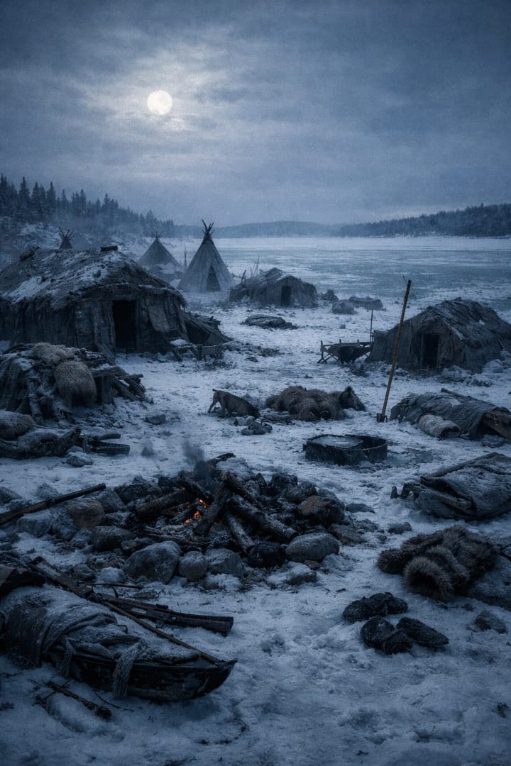 Labelle had known this village, a small community of Inuit families who had welcomed passersby on previous expeditions. Ahead of him, the cabins stood intact, as if frozen mid‑day. Stoves sat with dinner still unclaimed, garments lay as though someone had just stepped outside for a moment, and tools rested in neat order.