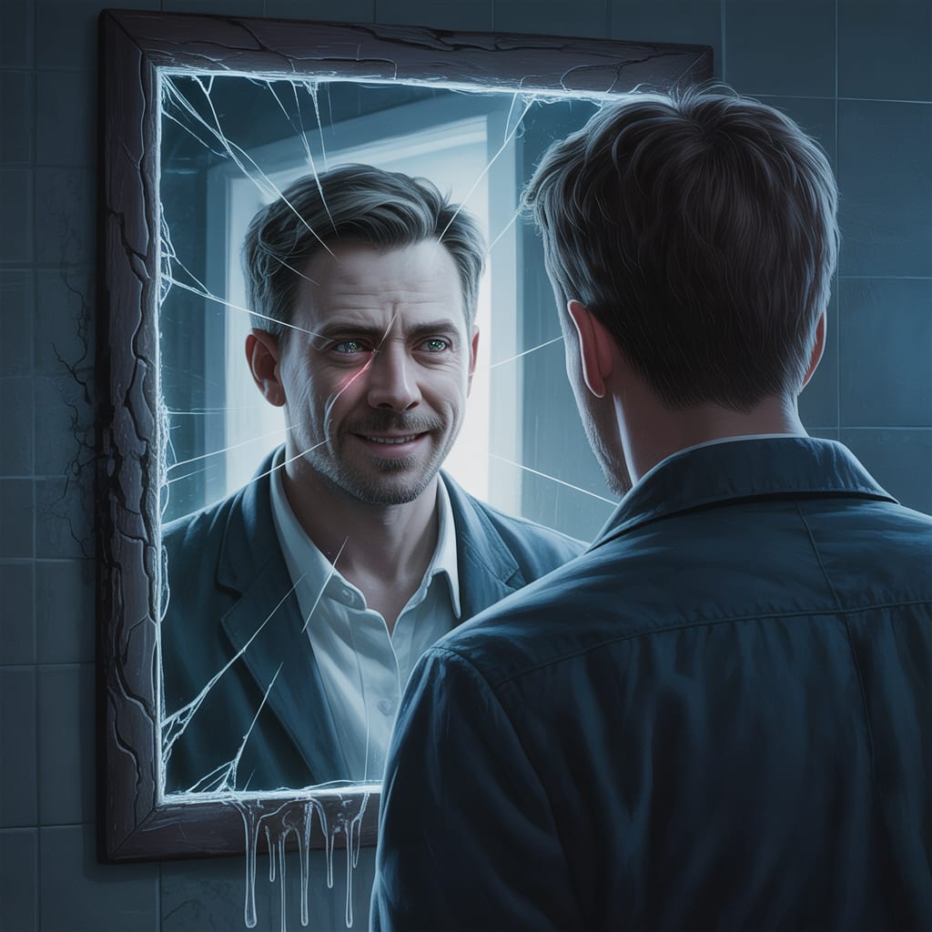 A psychological horror story where a man notices his reflection behaving differently—and it begins to take over.