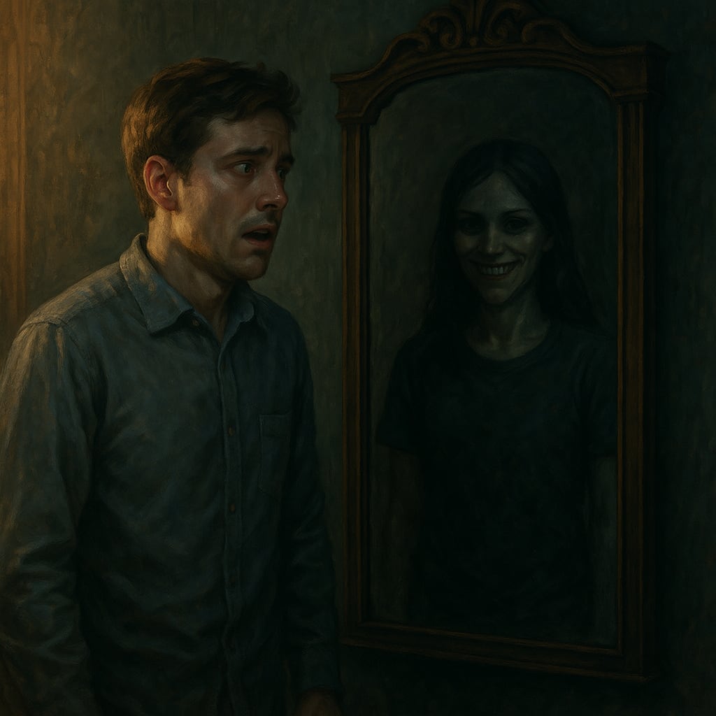 Her reflection didn’t match her movements. The smile wasn’t right—it was too wide, too sharp. I know it sounds crazy, but I swear it wasn’t her smile. It looked like something—someone—else.