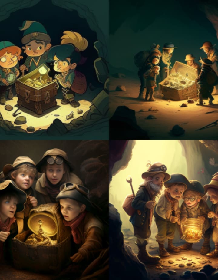 The group took it as a sign of good luck and headed off into the sunset, eager to begin a new adventure with their newfound riches. They didn't know what challenges lay ahead, but they knew they could face them together, with courage and determination. And that, they realized, was the greatest treasure of all.