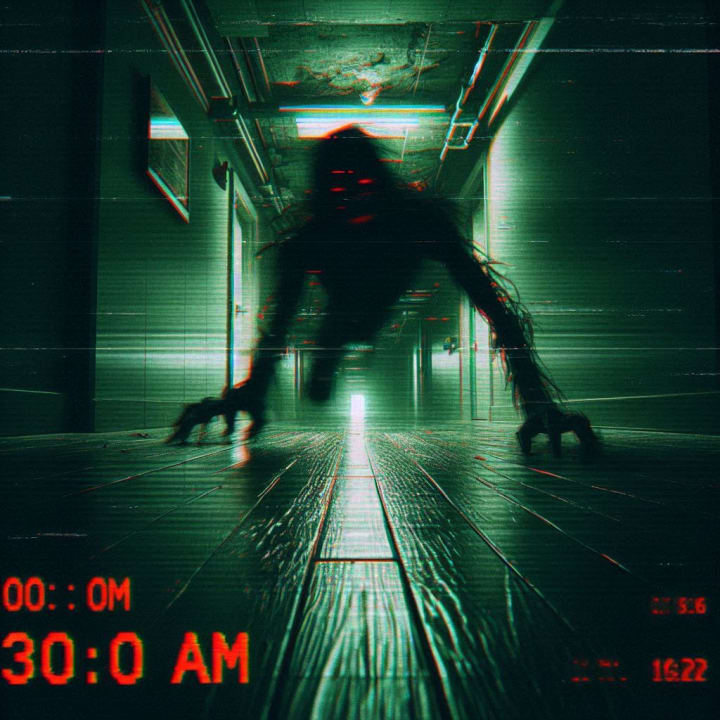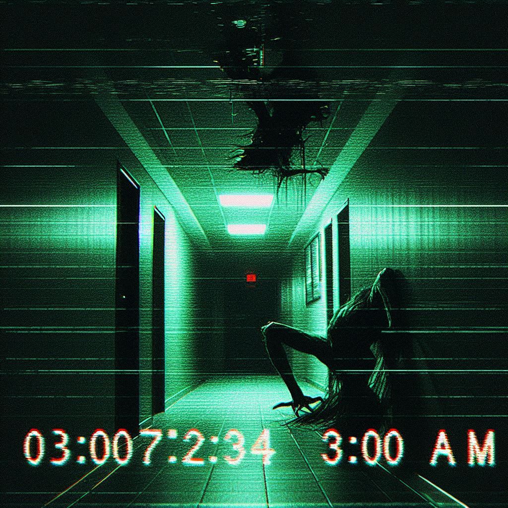 At 3:00 AM sharp, the hallway light flickered. Then, the feed glitched—a burst of static—and it appeared.