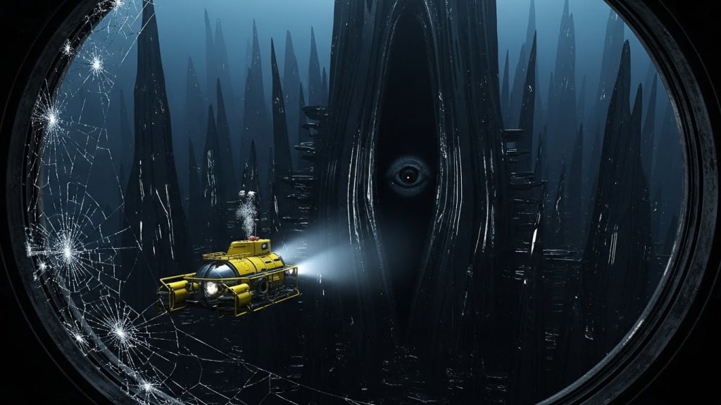 The pod’s powerful floodlights cut through the abyssal black. First, a glimmer. Not soft, not inviting. But a shard, impossibly sharp, glinting with a malevolent precision. Then another. And another. It wasn't rock. It wasn't coral. It was glass. Black, obsidian glass, stretching into towering spires, spiraling structures that defied physics and sanity. A city. A silent, utterly alien city forged from raw darkness.