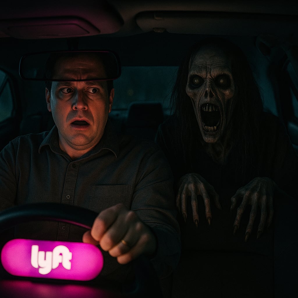 But she doesn’t open the door. Instead, she leans fully against my back passenger door — laughing. Not normal laughter either. It was like she was laughing into the paint. Then she suddenly bends backward — almost folding in half — her torso at a weird angle. Finally, she opens the door, and I realize my last rider left something in the backseat.