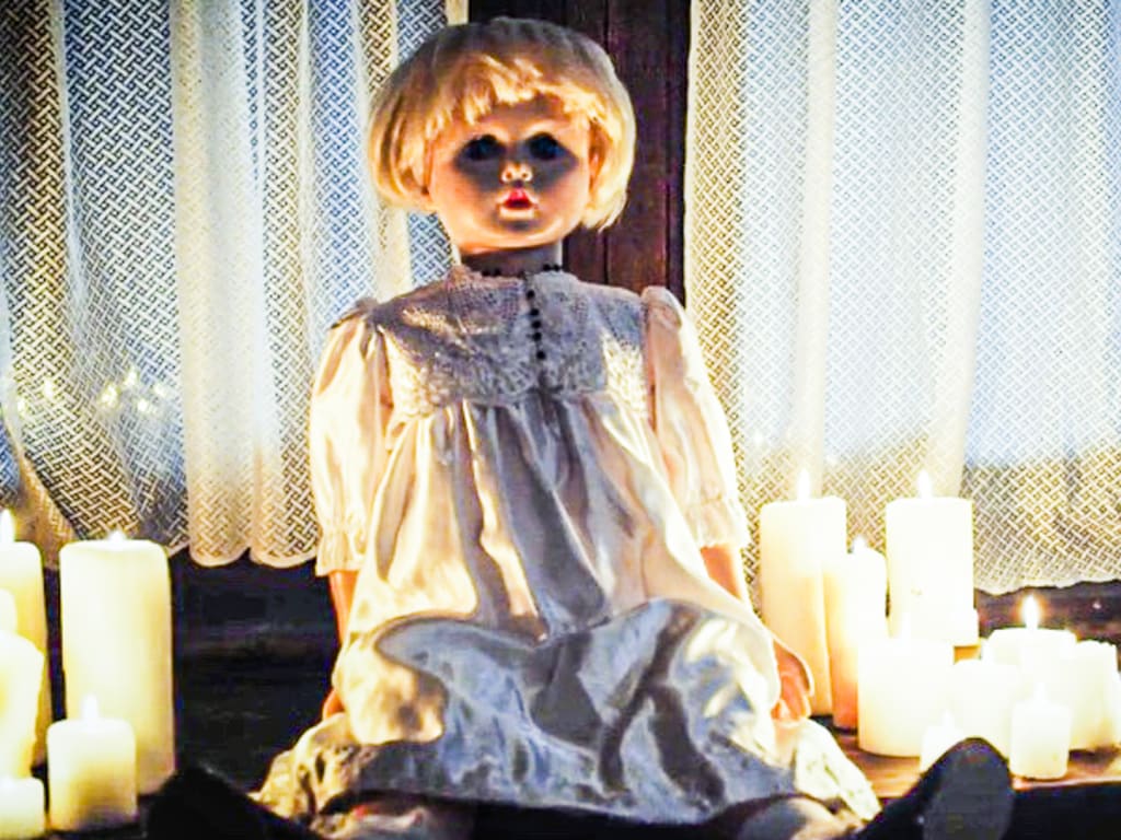 The couple screamed and tried to run out of the room, but the door wouldn't budge. It was as if something was holding it shut. They were trapped in the room with the haunted doll. Suddenly, the doll started to move, its porcelain hands reaching out to grab them.