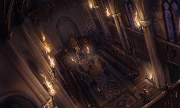 “No, thank you.” I turned and faced the door to the sanctuary. The voice outside had ceased. It’s listening again. I no longer was in a rush and turned back. “Father, why is it here? I mean... here in the church, mounted in a cage above the altar?”