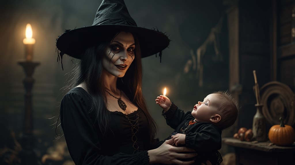 Inside her tower, Morvella carried baby Aarav to a chamber glowing with runes. She set him in a silver crib surrounded by jars filled with strange substances—powdered bone, dried herbs, pale-blue liquids that hissed softly.