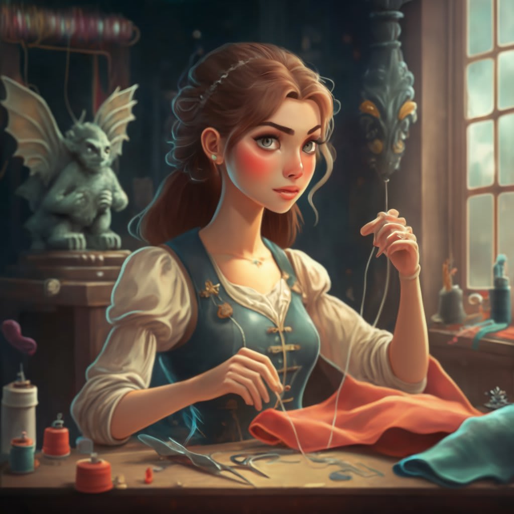 As Mildred went to work, the sound of the gargoyle needle holder clinking against her thimble filled the workshop with rhythm. Outside, the sun painted the sky a vivid orange and purple as it sank below the horizon. Darkness held a new kind of beauty here, in the land of twisted threads and spectral clientele; a beauty braided with humor, a hint of the macabre, and the quiet satisfaction of a job well done.