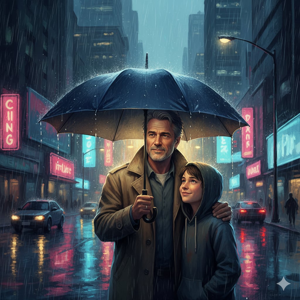I stood there, stunned, umbrella in hand, dry while the rain hammered the world around me. I never saw him again.
