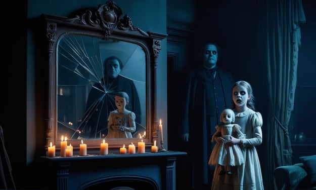 Her reflection in the mirror began to distort, her face stretching unnaturally as if the glass were alive. When she looked away, she felt invisible hands pressing on her shoulders, urging her toward the window.