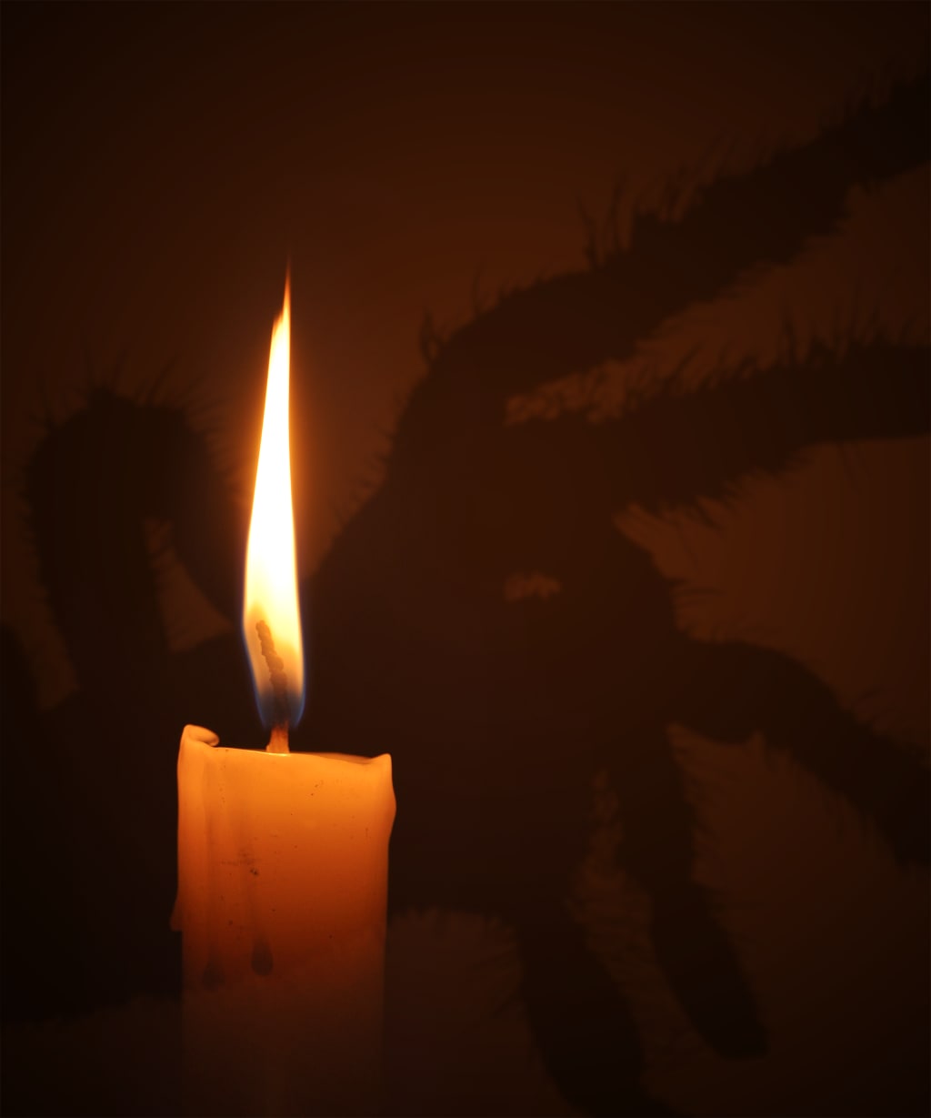 It was a spider, but a massive one, one the size of a bus. As it moved, I saw that the lights we saw were actually attached to it, like feelers on its face. It had large bulbous eyes the size of basketballs, all eight of them reflecting the light of its feelers on their wet surfaces. Four huge legs darted out to lift the dark brown spider up, and huge thick fangs the size of tree trunks reached out. They snatched around Colt’s chest, and once contact was made, the spider retreated. It moved so fast, Colt seemed to snap in half from the force. It wasn’t until the monstrous spider had swiftly moved its way back under the floorboards that the screaming began.