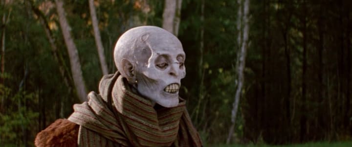 What makes the reveal so freaking cool, is that Gorcha is the only character in the movie who is not played by a person. Gorcha is a puppet, and even though it does look fake in some scenes, the puppet also looks so unnatural. I think the intention of the puppet was to let the audience know that this thing is not human, and it's so impressive that this idea actually worked for the film.