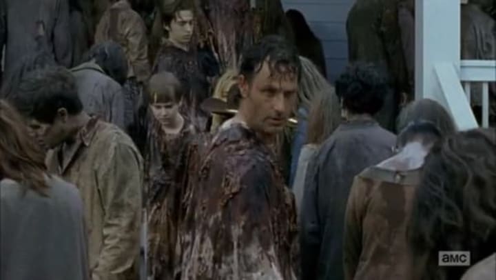 Rick's group disguised in herd of walkers on 'The Walking Dead' [Credit: AMC]