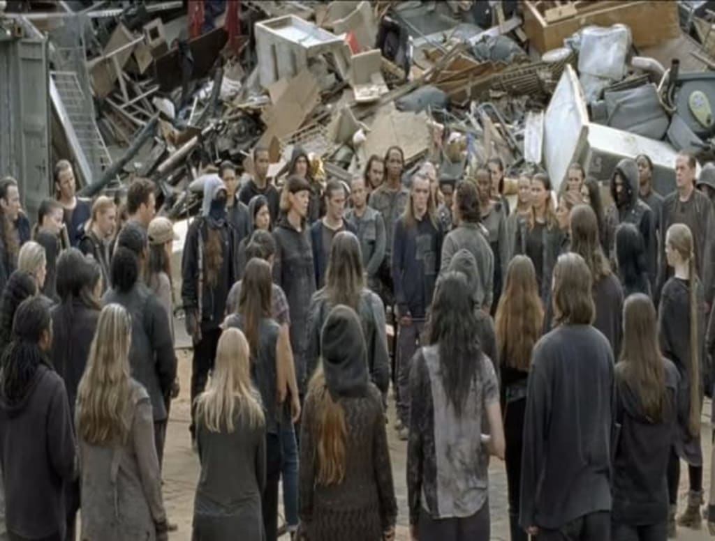 Last Sunday's episode of #TheWalkingDead concluded with Rick and company being surrounded by a new group of survivors. The group approached Rick with guns at the ready and it doesn't look like the situation will resolve itself amicably, especially with their leader claiming she owns the lives of Rick and his crew. She offers to sell them back their lives — this doesn't bode well for relations between Rick's group and the new survivors colony, who may or may not be the rumored group known as the "Garbage Pail Kids."