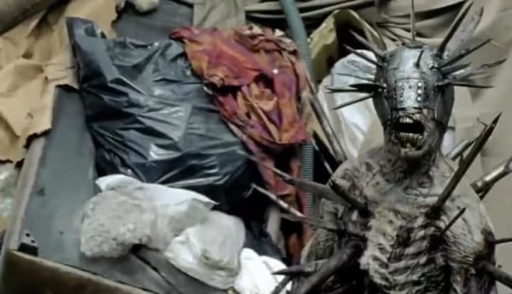 The scene depicting Rick fighting a walker appears to take place in a junkyard, the same junkyard Rick and company will be taken to in next week's episode.