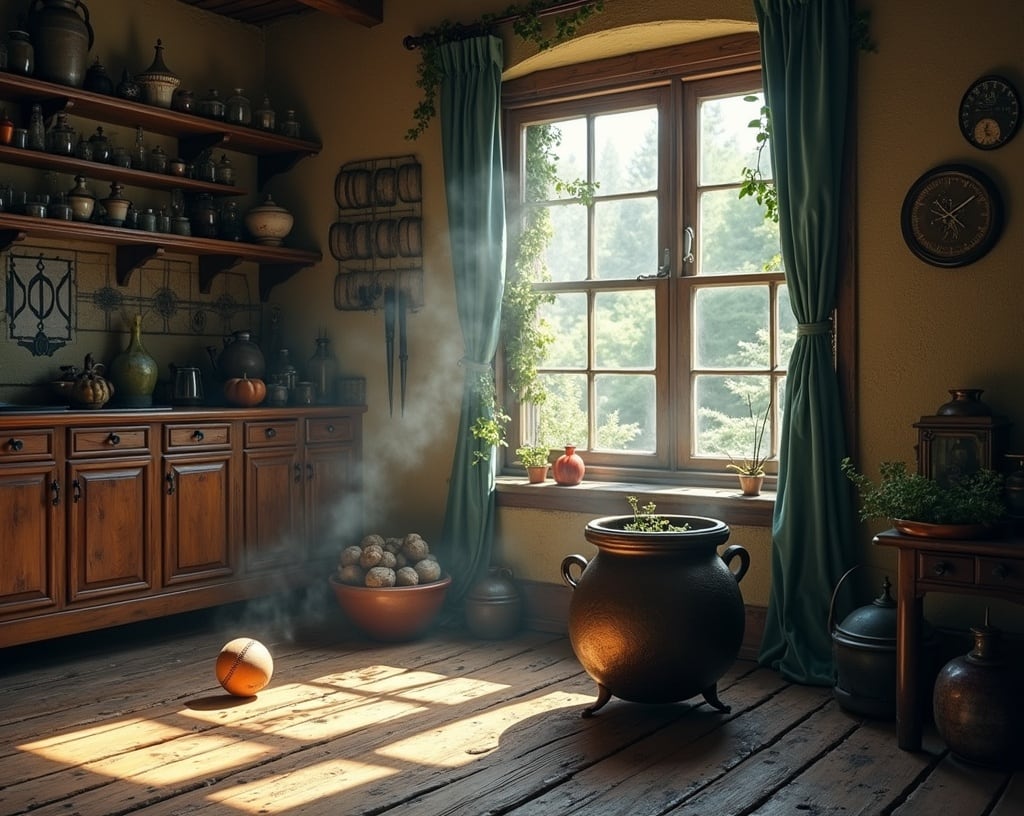 I giggled to myself, this would be too easy! I had one of those old straw brooms, rustic style decoration, hanging on the walls. I snatched it off its hooks and tugged my black shawl from the back of my armchair.