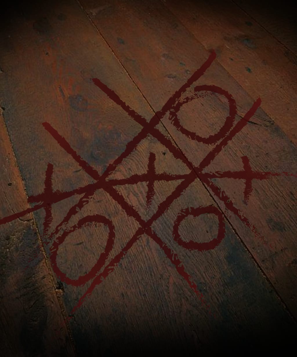 He reached out a violently trembling hand, slowly drawing out a lopsided “O” in the thick layer of dust caking the cabin’s rotting wood floor. Louis then snatched his hand back to his side as if expecting the other in the room to reach out and touch him. But that’s exactly what he was afraid of. He swallowed in a fruitless attempt to soothe his cotton dry mouth and mustered what little courage he had left to lift his eyes. He watched as a long, awkward, darkened limb silently reached out from the void just beyond the candle’s light. A clawed finger scratched in a lazy “X” one square beside his “O.” This was how the last few hours had been for Louis, trapped in a never ending game of tic-tac-toe with god only knows what creature was sitting at the edge of darkness before him. Louis and the other would play the game and it would always end in a draw. Always a draw. Then the other would erase their marks, and the game would start again. Louis didn’t dare lose while not knowing what the stakes were. He could only imagine they weren’t anything pleasant.
