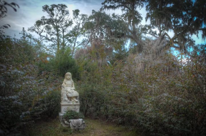 In Georgia- Savannah, Georgia to be exact there is a ghost story that is very well known and that is the story of little Grace Watson. Grace Watson was the daughter of W.J. and Frances Watson. This family was known because they managed a hotel named the Pulaski hotel. The little girl alot of time was seen around the hotel entertaining tree or being outside among nature. You could say she was the greeter of the hotel. Sadly however in 1889, two days before easter the little girl passed away from pneumonia. The hotel was demolished after her death. Her father who was a sculpter made a life size sculpture of little Grace to put by her gravestone. It is said that since she died she has been seen around Johnston Square running throught the bushes and interacting with people. Most sightings have seen the little girl late at night silently gliding in a white dress.