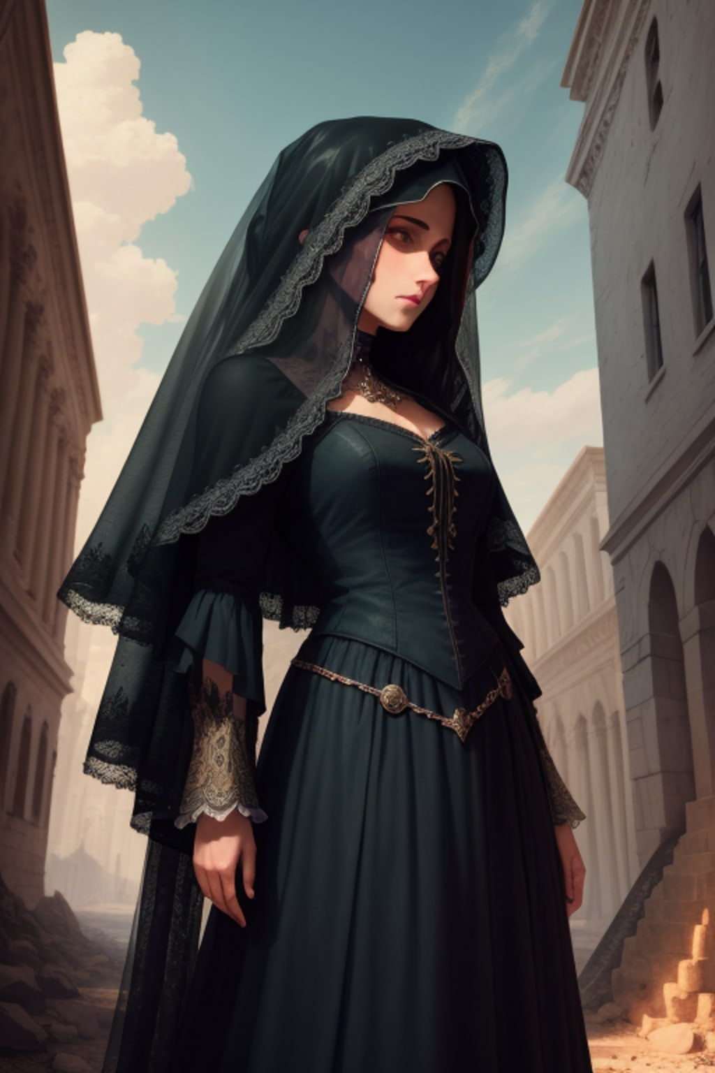 "Veil of Desolation" follows the journey of Aeliana, a young woman burdened by her family's dark legacy in the cursed village of Duskhaven. The village is trapped in perpetual twilight due to an ancient curse, which demands a life be sacrificed every generation to maintain its power. Aeliana's parents were the most recent victims of this curse, leaving her to care for her younger sibling, Emery.In the forsaken hamlet of Duskhaven, perpetual twilight cast an eerie pallor over the landscape, where the moon's glow was more common than the sun's rays. The village was tainted by a history steeped in tragedy, with whispered tales of an ancient curse that ensnared its residents in a never-ending cycle of suffering. Legend had it that a pact, forged with a malevolent entity, demanded a life be claimed every generation to uphold its power.