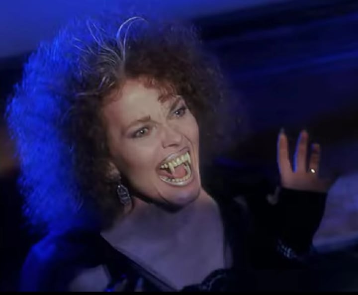 "The Secret" was Tales from the Crypt's second season finale, and aired on July 31, 1990. The episode featured the legendary Grace Zabriskie as the evil Mrs. Colbert, and regarding her, I have a little story to tell. One night, at around the midnight hour, I--around 11 years old at the time--watched this episode for the first time. When that climax commenced, and Mrs. Colbert came out in her evil vampire look, I was absolutely enraptured. Again, it's that change in attire in heel turns. Look at the top photo; Mrs. Colbert has that typical aristocratic look, that "old money" look for most of the episode. Once she's revealed as an evil vampiress, we see the wild hairstyle, and quite the sexy garment and cape. Don't get me wrong; Mrs. Colbert was amazing as a whole, as was Zabriskie's performance in the episode. However, Mrs. Colbert's heel turn in that climax was a thing of beauty in more ways than one, and seeing Zabriskie act out her character's sadistic demeanor, as well as show off her sexy vampiress look? Well, there's not enough chef's kisses in the world for that epic scene.