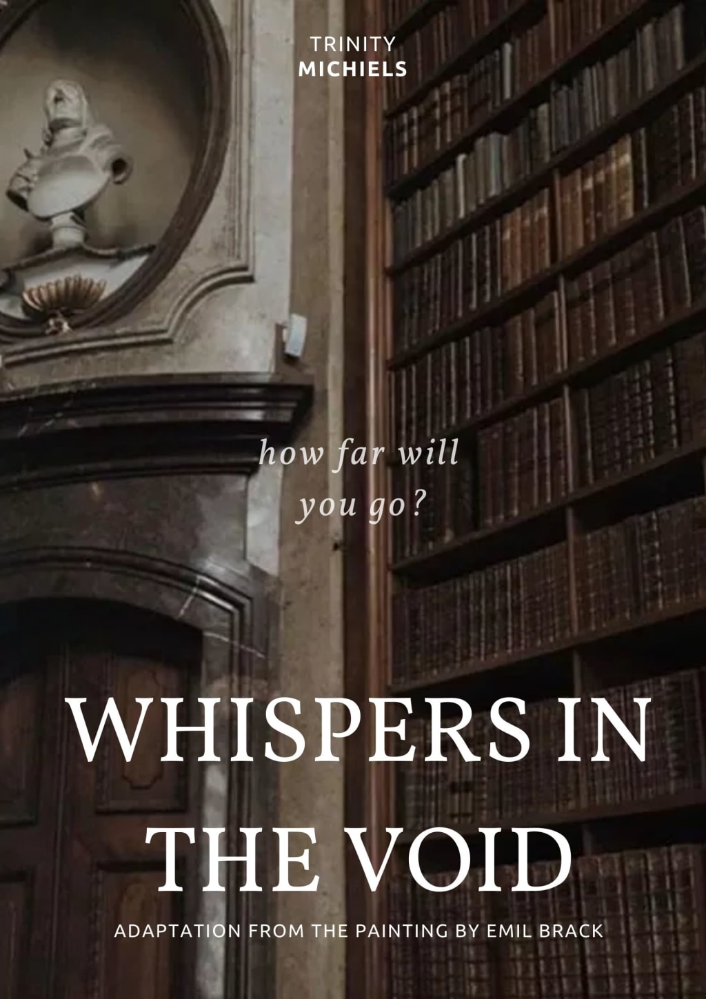 As I watch the car drive away, I can hardly contain my excitement. Delilah was taking her usual nap that lasts far longer than she intends it to. So, I grab the key to the library from my father’s study, and race to the door. I carefully unlock the door to the library and step inside. It is absolutely stunning. Walls and walls of books, endless amounts of knowledge, stories and connections. I study each shelf carefully and look at hundreds of books. One of them is different from the rest, however. It’s dusty, the rest seem to be perfectly clean. I dust it off and read the title “Chuchote Dans le Vide” French. I think that means “whispers in the void.” I open the book to the first page. It is very strange, the book is written in English, but the title is French. I can’t say I have ever seen anything quite like it.