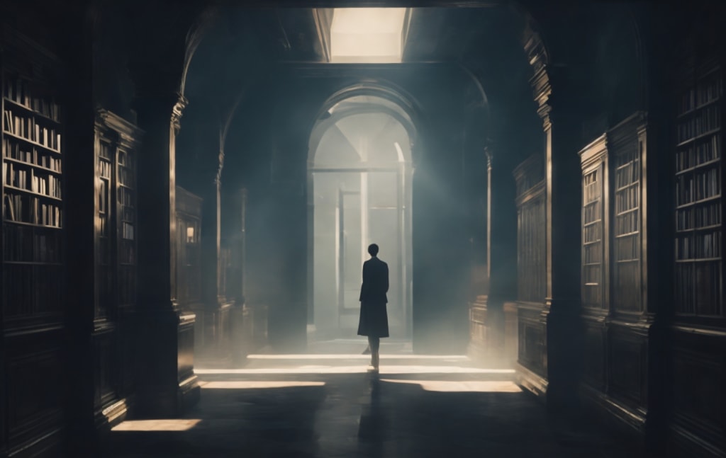 Undeterred, Amelia pressed on, each step echoing through the empty space. As she moved deeper into the library, the architecture seemed to shift around her, leading her into a labyrinth of endless corridors. Panic gnawed at the edges of her mind, but she refused to succumb.