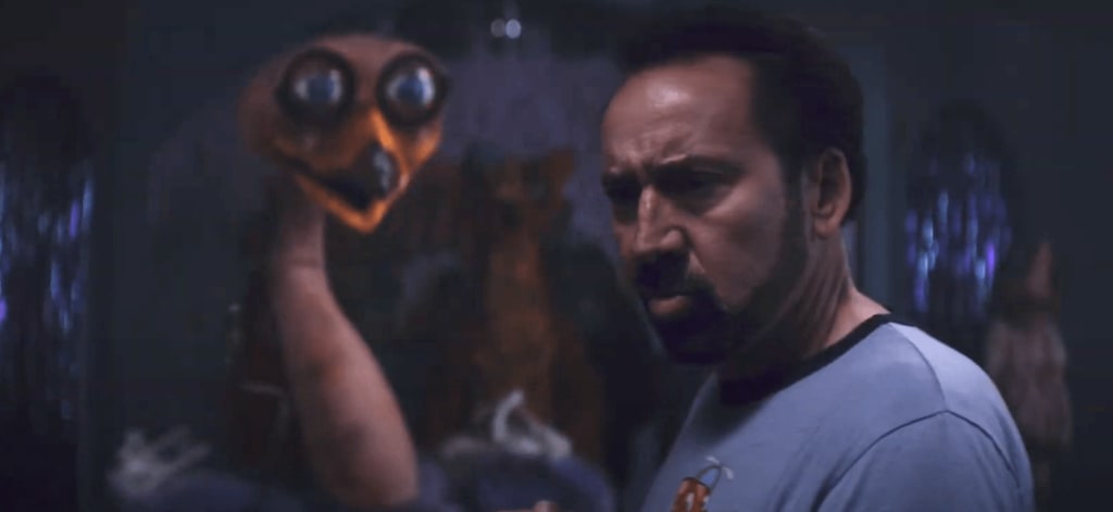 The overwhelming popularity of the Five Nights at Freddy’s franchise has led to many filmmakers chomping at the bit to capitalize off of its success. A proper adaptation from Chris Columbus and Jason Blum is apparently in the works, but until then, movies like Willy’s Wonderland and The Banana Splits Movie will have to tide us over. Much like the latter film, which came out in 2019, Willy’s Wonderland is a pretty good time. It’s not gonna be an instant classic or anything, but it’s enjoyable enough to potentially garner some cult status. It’s biggest flaw is that, much like The Banana Splits Movie, it doesn’t really take full advantage of the zaniness of its concept. It's not particularly unique or inventive, nor does it do much in the way of developing its characters. It simply remains content to coast on the wackiness of its premise. That being said, there’s just enough fun to be mined from said wacky premise to make for an entertaining little low-budget cheesefest. The effects are 50/50, but when they’re good (i.e., when they’re using actual puppets), they’re quite entertaining. If the film was intended to be taken more seriously, this would be a major hindrance, but I can be a bit more forgiving in a sillier B-movie like this. The violence in the film is so ridiculous that you’d have to be pretty stuck-up to find it boring or ineffective, whether or not the effects are all that convincing. Again, even when the film misses the mark, it’s still impossible to hate because it’s just damn fun. You’re getting to see Nicolas Cage fight evil Showbiz Pizza characters! How can you not enjoy that, even a little?