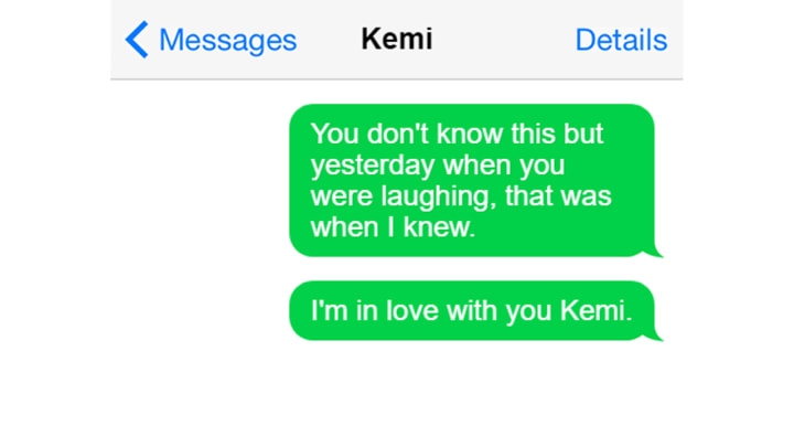 Real life. This is real. And I love this one so much because it's from one of my friends, Adedotun, and he and his girlfriend whose name really is Kemi had been having this on and off thing for MONTHS before they finally got together. I obviously asked him when I was compiling answers for this list about the most romantic text he'd ever sent her and this wasn't even the one he picked. He didn't pick. We were just scrolling through to find one that was interesting, and then I saw this message and I said guuuuy, THIS IS THE ONE.