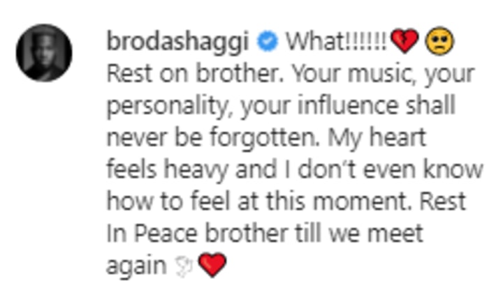 What!!!!!!ππ₯Ί Rest on brother. Your music, your personality, your influence shall never be forgotten. My heart feels heavy and I donβt even know how to feel at this moment. Rest In Peace brother till we meet again πβ€οΈ