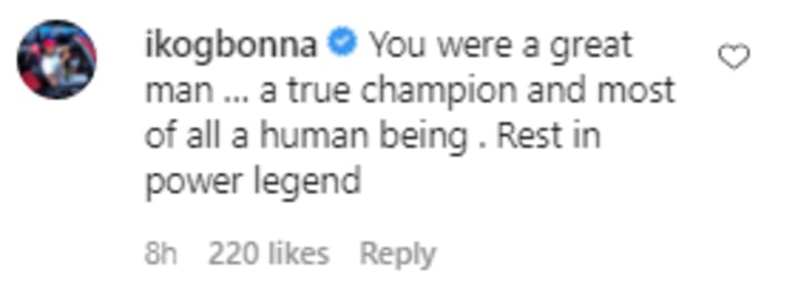 You were a great man β¦ a true champion and most of all a human being . Rest in power legend