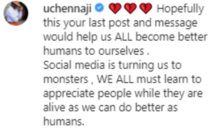 Social media is turning us to monsters , WE ALL must learn to appreciate people while they are alive as we can do better as humans.