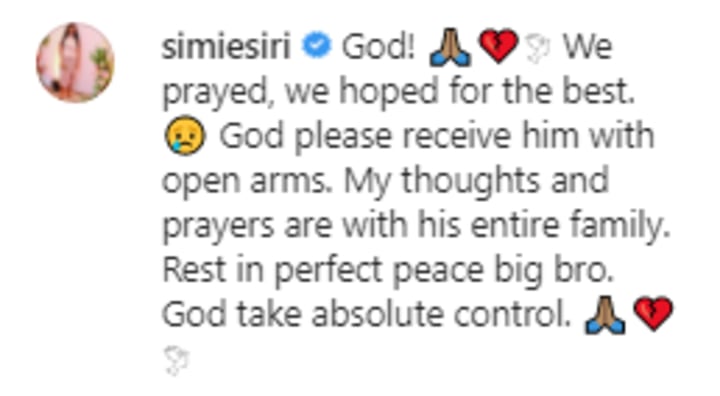 My brother, gosh, pls say something. Hope this isn't true πππ. We still chatted recently . πππ