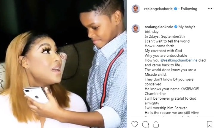 “My baby’s birthday In 2days, September 5th I can’t wait to tell the world How u came forth My covenant with God Why you are untouchable How you @realkingchamberline died and came back to life , The world don’t know you are a Miracle child. They don’t know b4 you were conceived He knows your name KASIEMOBI Chamberline I will be forever grateful to God almighty I will worship him Forever He is the reason we are still Alive. Someone dare sent a death sentence To my son , that died when Jesus died? And came back to life when he resurrected Its 7 days they gave They are going to be disgraced and removed from The surface of the earth in 7 days. As long as God lives we shall continue to live. You are blessed son’