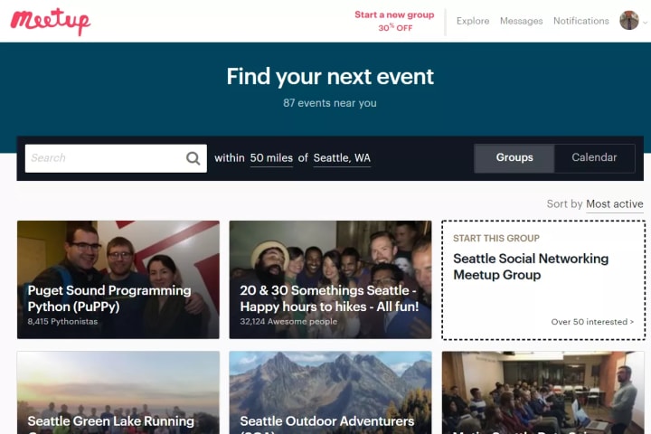 This site isn't your typical dating service because it doesn't revolve around finding people to go out with like Tinder and these other websites do. However, it's a fantastic way to find people who are interested in the same things you are, from mountain climbing to book-of-the-month clubs, language learning, and everything in between.