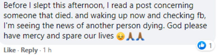 This is like the 4th time I'm hearing news of death...what is happening abeg.