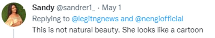 Another celebrity who was bashed for over-editing her photos is Big Brother Naija star, Nengi Hampson. When this picture was uploaded to social media, people had a lot of thoughts. One person said, "She looks beautiful but the makeup and editing has gone way overboard 😭😭" while another said "This is not natural beauty. She looks like a cartoon"