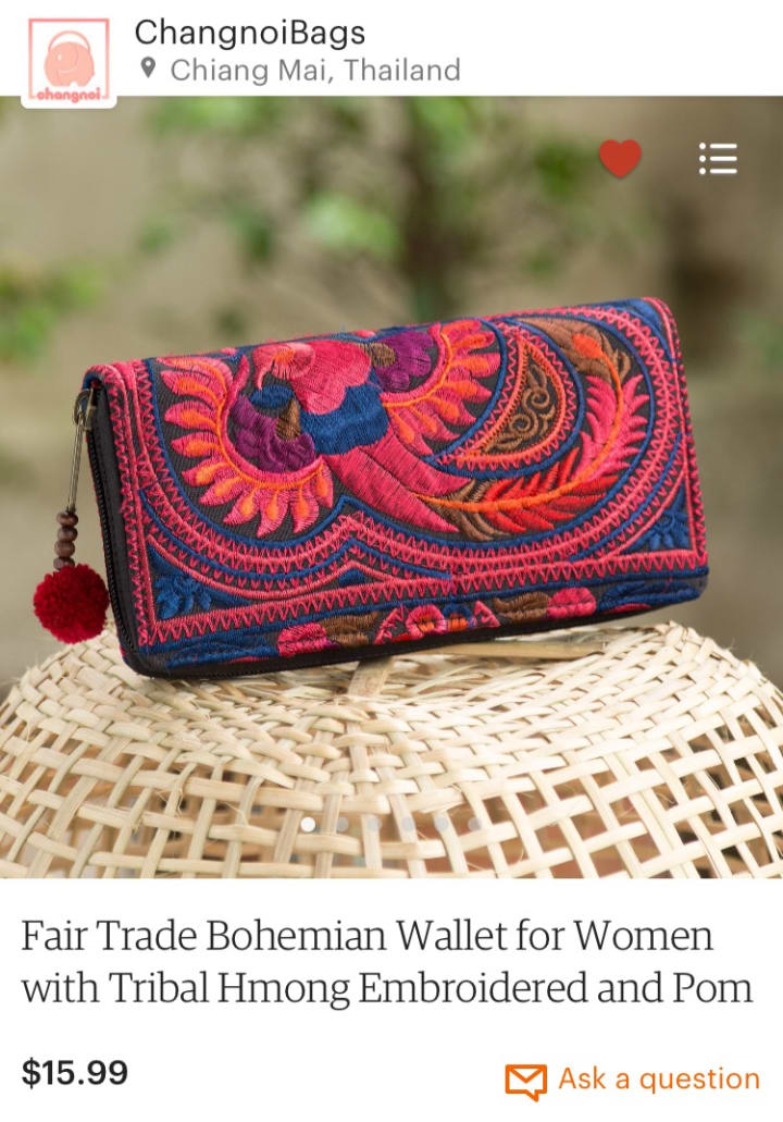 There's a lot of heart to this little shop. Narissara is a young adult with an encouraging story. As a kid, she used to love to draw and now, she's turning that passion into a business that helps her and her family. No two bags are alike. The fabric used is made by individual artisans and embroidery by the Hmong hill tribes in Northern Thailand. In short, these are gorgeous, functional bags at a great price. What's better than that? You're providing income for families! Sounds like an all-around score to me! Here's the link.