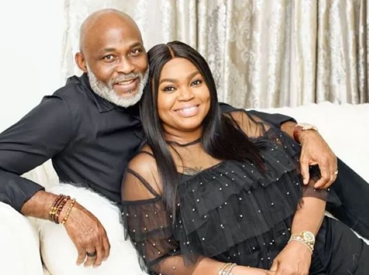 Beloved Nollywood actor, Richard Mofe-Damijo has found love twice in his life. His first wife, May Ezekiel unfortunately passed away in 1996. After May, he found love with his now second wife Jumobi Adegbesan who he married in 2000. Last year the couple celebrated 20 years of marriage.