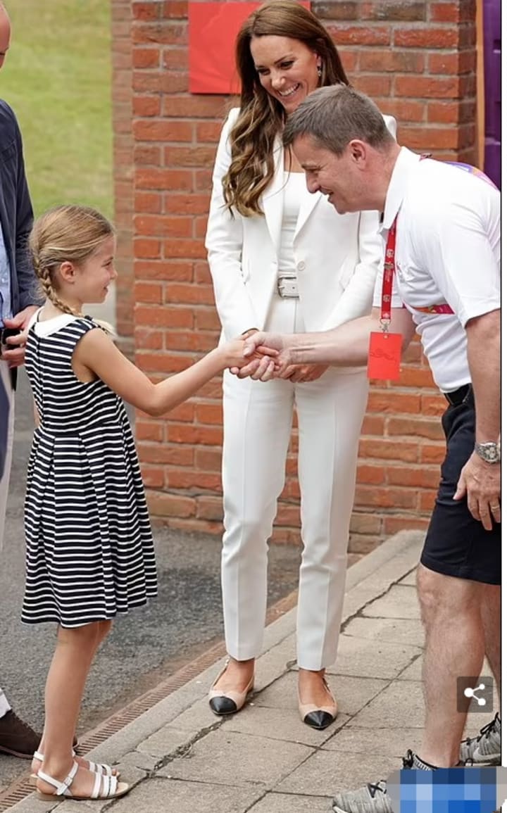 After watching the swim meet, the family visited another program that supports young athletes, and Charlotte's standard royal handshake came back to haunt her.