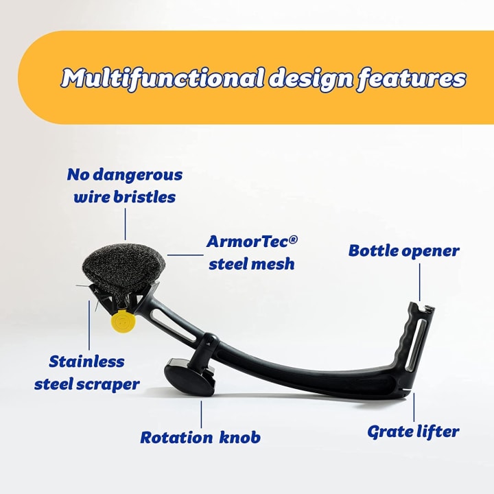 Ergonomic Design: The Scrub Daddy BBQ Grill Brush is designed with an ergonomic handle that ensures a comfortable grip and minimizes hand fatigue during cleaning sessions. The built-in scraper adds convenience in removing stubborn residue.