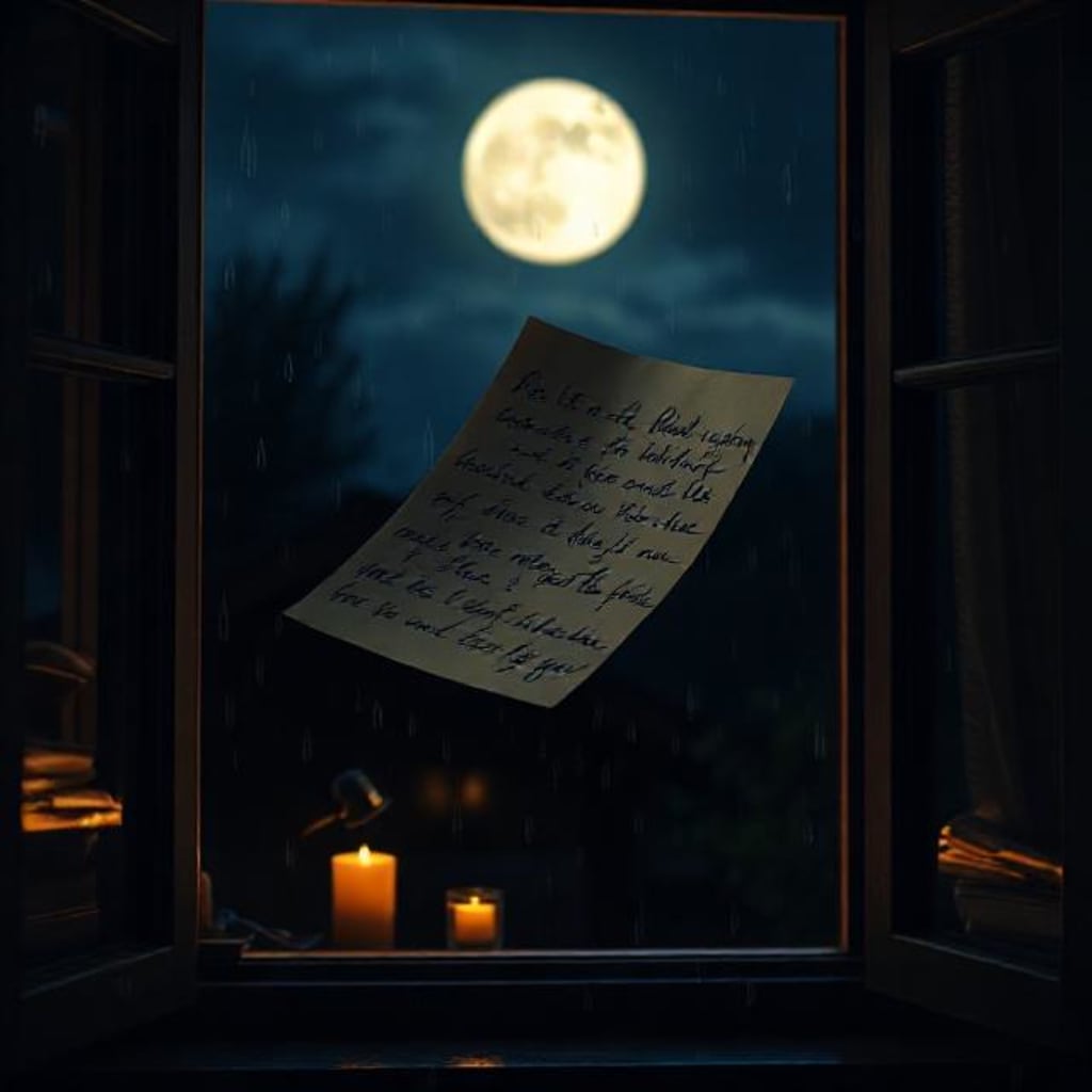 Finally, he opened the window and let the cool night breeze sweep into the room. He held the letter for a moment longer, then released it. The wind caught it and carried it upward, disappearing into the darkness.
