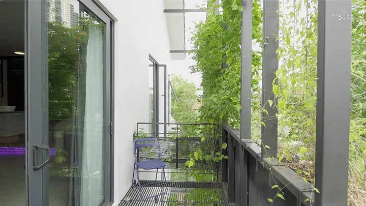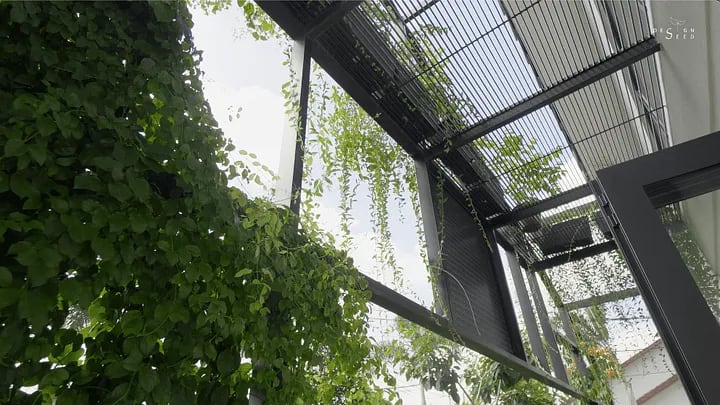 The way the balcony was designed, it allows ample airflow and rainwater to gush through and light to penetrate through. The balcony also provides a practical servicing platform for the owner to clean the panes of glass and attend to the green roof and green balcony.