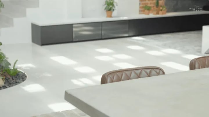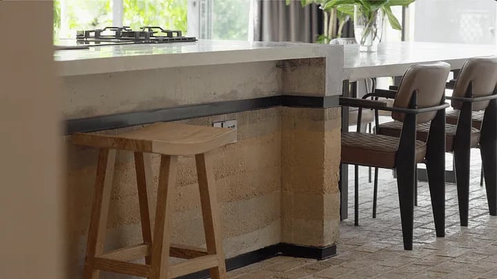 Oscar explains that if you have such a big space, texture is very important to create a sense of warmth. So instead of putting a wall as a boundary, he implemented raised platforms to create that boundary between the dry kitchen and the living area in the house renovations.
