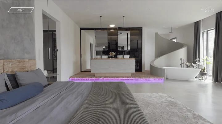 Ever seen a bathtub in an open concept bedroom? Check this out.