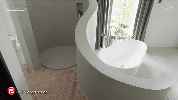 The most challenging part of building this design is the curvature of the shower area because it is a small curve. Additionally, the curvature forms from low to high, causing a gradient during the casting.