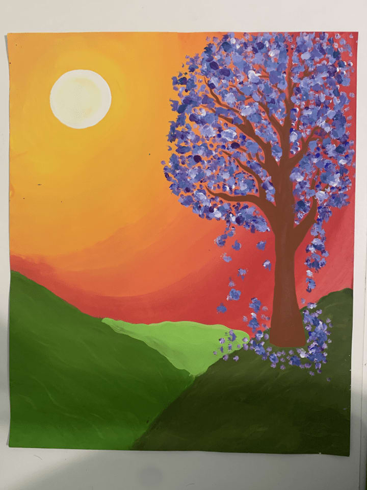 Peace of mind is what I would call it, the feeling I get when I am zoning in on my art. Where I feel I am in my own world, while in this far off dimension alone surrounded by creativity and endless possibilities. I feel overwhelmed with bliss, like I am walking on cloud nine and the world is so far beneath my feet that I cannot see it with my own two eyes. Far above the city that never sleeps, the problems of yesterday, and the anxieties of tomorrow, I feel above all my problems like I am a giant looking down on an ant. As I feel euphoria, I use my pencil to sketch my feelings, and color to fill in the blanks. I write a story with no words, like my canvas is a therapist and I am in need of therapy. Which is true except I do not need therapy, I need a paint brush and some paint. Art is my remedy; it relieves me of stress, takes away my worries, and frees me from doubt. I love to dedicate art to memories, places, people, and things that are important to me. One of my favorite things to do is to paint a sunrise in various places, because a sunrise is a symbol to me, of new beginnings and new opportunities. Behind every pretty picture is a deeper meaning and behind every paint brush is an author with a story to tell.
