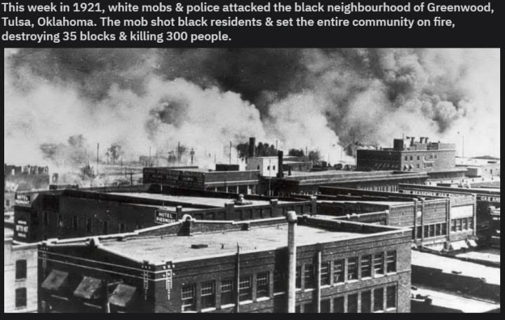 The year is 1921. The sign reads: Welcome to Tulsa, Oklahoma. Greenwood.